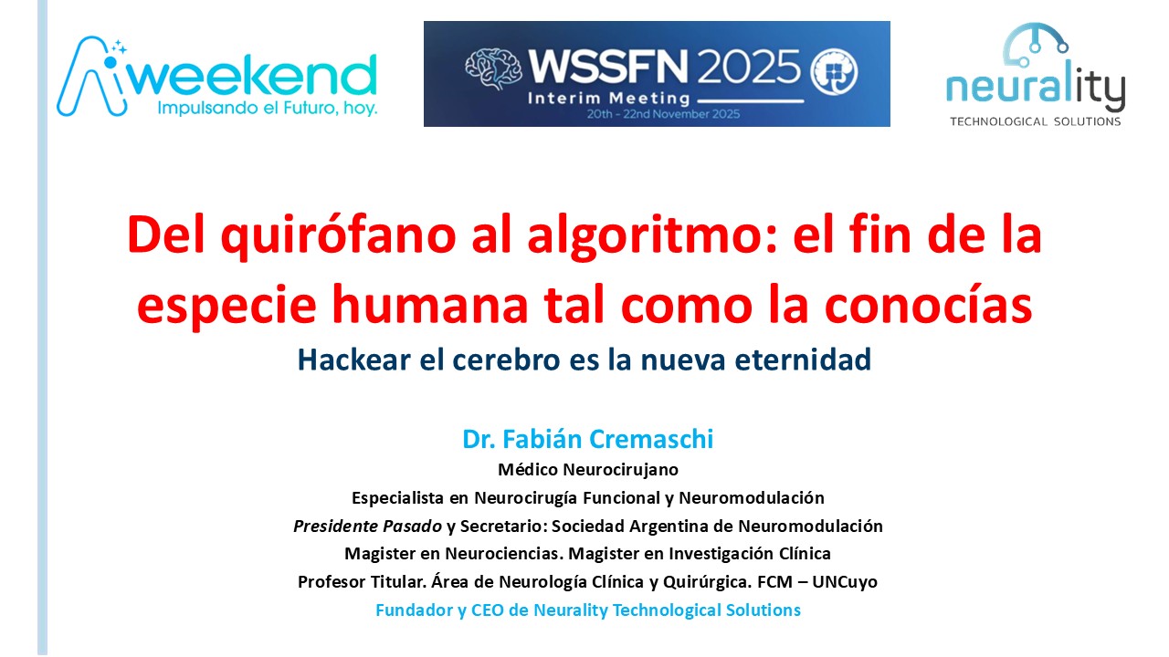 En esta oportunidad, voy a hacer una adaptación de la charla que di en el Congreso Mundial de Neurocirugía Funcional y Estereotaxia a fines del 2025 y uno de los temas principales del próximo Congreso Mundial de Neuromodulación en Lisboa, en mayo: IA y neurocirugía de la mente, transhumanismo, implantes cerebrales para hackear el cerebro y, ¿la IA nos va a llevar a la AMORTALIDAD?
